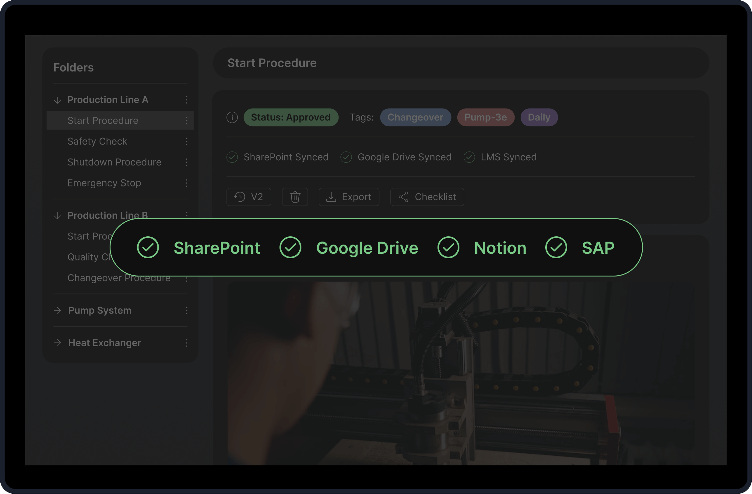 Connect Soply with your existing systems such as SharePoint, LMS, or Connected Worker Platforms to sync documentation and training automatically.